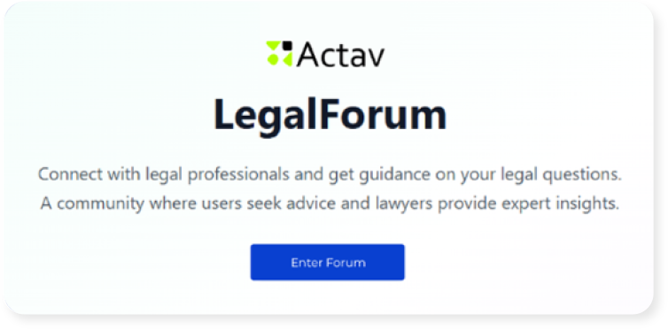 Rejoignez Actav Connect, notre forum où avocats et pros échangent directement. Posez vos questions et obtenez des réponses fiables GRATUITES, pour avancer sans stress.